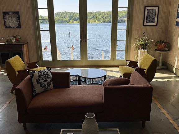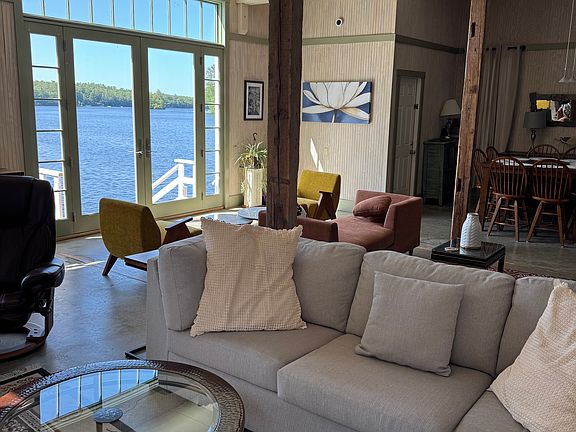 One-of-a-kind rental extending over the water at the head of Damariscotta Lake. Located next to one of Maine's favorite swimming spots, this property offers a unique connection to nature with 12-foot ceilings and natural light that reflects off the lake throughout the day.