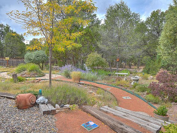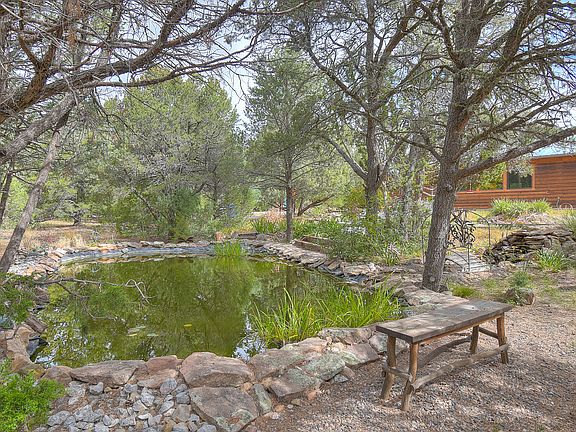 ONE OF A KIND! Absolutely Exquisite Property sitting amongst the PONDEROSAS, PIÑONS and JUNIPERS. Are you looking for a loved Homestead with many ARTISTIC touches, then this is it! The 3 bedroom, 2 bath Open Floor plan is impeccably maintained, Freshly painted with Tall Cathedral Ceilings. Take in the view from the large picture window in the living room and master overlooking the 6000 gal KOI/ GOLDFISH POND. Open Cook's kitchen with QUARTZ Countertops and Upgraded SOLID OAK Cabinetry. Relax in the Master Suite w/Remodeled Spacious shower-custom tile work. NEW OWNED SOLAR panels and BRAND NEW High Efficient Water Heater. NEW Sitting Deck to enjoy the outdoors, Perennial Flower beds, Fenced Garden Area, walking paths, even a Certified Habitat Property..Don't miss this opportunity!!!