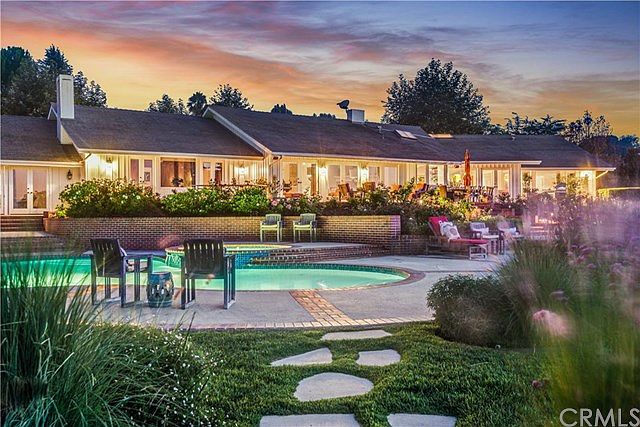 This private, gated estate is situated on 5 prime acres in Rolling Hills, with spectacular views of the Santa Monica Bay and sparkling city lights. The incredible grounds include lush lawns, expansive patios, an oversized pool and spa as well as a second, separate play area. Inside, a formal entry greets you; hardwood floors, vaulted ceilings and French doors throughout make an immediate impression. The huge living room has a dramatic fireplace and opens to the extraordinary, paneled library / office. There's a large formal dining room as well as a spacious eating area off the gourmet kitchen with granite counters. The attached family room is perfectly positioned to encourage large gatherings. There's also a separate game / media room. The luxurious master suite has a fireplace and two separate bathrooms! The long driveway leads to a huge, 4 car garage. Avocado, plum and apricot trees are just some of the delicacies in the orchard.
