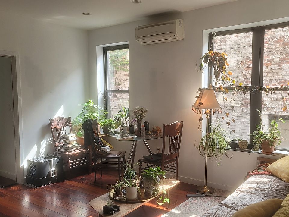 Beautiful sun-kissed 3-bedroom loft-like apartment in the heart of Clinton Hill. Apartment Features Loft-style layout with high ceilings and exposed brick Three bedrooms, two of which fit a Queen size bed a dresser and average sized desk. Brazilian wood floors throughout Central heat & A/C for year-round comfort Modern kitchen with stainless steel appliances & dishwasher Laundry available in the building Prime Location Only a 5-minute walk to the A/C and G trains quick commute to Manhattan or Downtown Brooklyn Steps from Pratt Institute, local cafes, restaurants, and boutique shops along Myrtle and Fulton Surrounded by Clinton Hill's tree-lined streets, brownstones, and vibrant community Rental Details Application fee: $20 Pet rent: $50/cat, $75/dog Bike storage: $25/month Cleaning fee due upon move-out (varies by unit size)