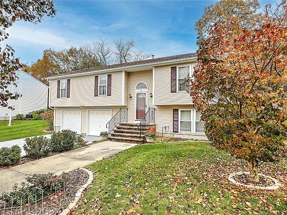 3 Rachella Court is a pristine Raised Ranch in the Kent Heights neighborhood of East Providence. This well-appointed residence boasts a thoughtful layout featuring two bedrooms, a full bathroom, and a primary suite, offering a comfortable and private retreat. The heart of the home is the inviting kitchen, complete with a convenient island, creating a perfect space to enjoy meals. The kitchen seamlessly flows into the dining room, where sliders open to a spacious deck, providing an outdoor dining and relaxation setting. You can enjoy panoramic views of the beautifully landscaped yard from the deck, creating a serene and peaceful atmosphere. The generously sized living room is a focal point of the home, offering a warm and welcoming ambiance for gatherings with family and friends. Natural light floods the space, enhancing the overall sense of openness and comfort. The lower level of the property features a finished basement, adding valuable additional living space for various purposes, such as a recreation room or home office. The oversized two-car garage provides ample storage and parking space, catering to convenience and functionality. Central air conditioning has been integrated into the home for ultimate comfort, ensuring a pleasant environment throughout the seasons. This residence provides a harmonious blend of indoor and outdoor living and a convenient and well-connected location within the East Providence community.