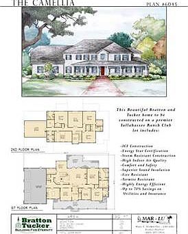 The ultimate home "The Camellia" for this premier corner parcel located at the entrance of the Tallahassee Ranch Club showcases Bratton and Tuckers expertise and unique ability to bring style and design to this ICF built home featuring Spray Foam roof insulation (Iceynene) and an Energy Star Certification. Price may vary with amenities and well worth investigating to make this beauty yours or pick another design offered by Bratton & Tucker.Theatre, Pool room, Game Room, Library, 2 Master suites down, 2 bedrm w/baths up and more. Brokered And Advertised By: Mar-Lu Properties, Inc. Listing Agent: Mary Bookmiller