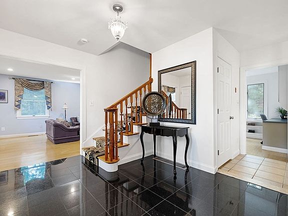Elegantly perched above street level, this stately brick-front Colonial offers a spacious, versatile floorplan in a peaceful, private setting near the Weston line and Rivers School. Enjoy one of Natick’s best commutes with easy access to the Mass Pike, Route 30, and 128. The recently renovated primary suite boasts a luxurious 5-piece bath with two vanities, a soaking tub and separate shower, plus a dream walk-in closet created from the 4th bedroom. The sun-filled cathedral kitchen and great room feature palladian windows, skylights, a fireside family room, and casual dining area—perfect for entertaining. The chef’s kitchen includes a Miele stainless induction range, Braun high-velocity vent hood, and custom dry bar. Additional highlights: first-floor office with built-ins, front-to-back formal living room, hardwood floors, and a finished basement offering flexible living space. This home seamlessly blends comfort, style, and convenience in one of Natick’s most desirable locations