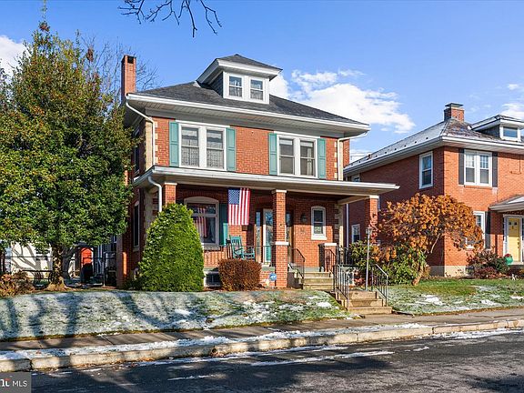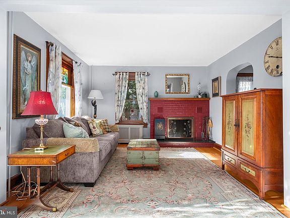 Stately and timeless, this classic brick Colonial showcases original hardwood floors, trimwork, and moldings throughout. Recent updates provide peace of mind, including a brand-new architectural shingle roof, natural gas Navien boiler, updated electrical, and a water softener. The living room offers a warm and inviting atmosphere with a brick wood-burning fireplace and beautiful stained-glass windows, flowing seamlessly into the formal dining room and kitchen, which features a stainless steel range, built-in microwave, and recessed lighting. Just off the kitchen is a fun and convenient laundry room complete with a classic built-in ironing board and an adjoining powder room highlighted by a custom-made stained-glass window created by the owner. A French door opens to the enclosed porch, which offers both a trap door to the basement and access to a three-season room leading out to the backyard. The home features two spacious bedrooms plus a versatile bonus room, currently used as a walk-in closet, with access to a covered balcony overlooking the private yard and charming neighborhood. The main bedroom was once two, and could be separated once again. The bathroom is adorned with the original tile, preserving the character of the era. A walk-up attic could be finished as a third bedroom. The fully fenced outdoor space provides privacy and shade under a mature maple tree and includes a solid brick garage, a second heated garage with workshop space, and a surprising enclosed brick barbecue . This stunning home is move-in ready and awaits its next owner.