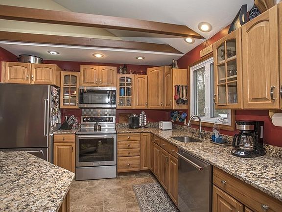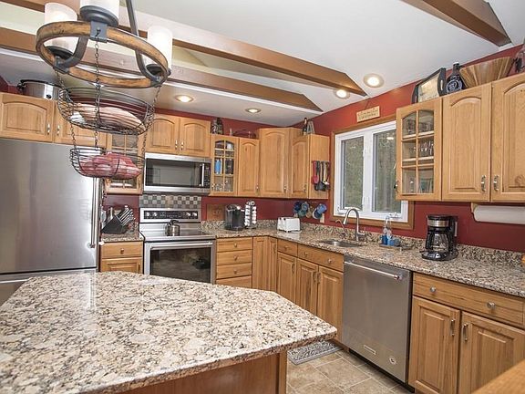 Beautiful Raised Ranch with new Vinyl siding, Updated windows and freshly painted. Large open kitchen with granite counters, Kitchen island and Dning area. Living Room has cathedral ceilings ,Fireplace and Bow window. Dining Room opens up to large screened porch. Finished lower level has second Fireplace,Half bath and laundry. Two car attached garage with work area. Central A/C and Large lot with shed. Close to Highway and Shopping,First showing at Open House Saturday 11 to 1:00pm.
