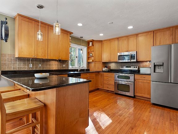 - Features: Bathroom - Half, Flooring - Hardwood, Countertops - Stone/Granite/Solid, Cabinets - Upgraded, Exterior Access, Stainless Steel Appliances, Peninsula, Lighting - Pendant