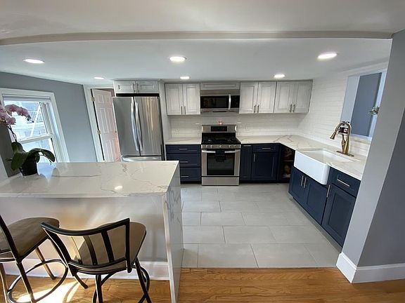 - Kit Dscrp: Countertops - Stone/Granite/Solid, Flooring - Stone/Ceramic Tile, Breakfast Bar / Nook, Recessed Lighting, Dining Area, Stainless Steel Appliances, Main Level, Remodeled, Window(s) - Picture, Gas Stove