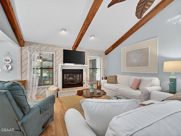 Look no further! This one's just special! Turnkey single story block construction townhome in desirable Ormond Beach neighborhood of The Trails. Fully furnished and move in ready! Super private end unit surrounded by lush landscaping and mature trees. Light & Bright w/volume ceilings, skylights & wood burning fireplace as focal point of living areas. Eat in kitchen w/rolling bar! Fabulous enclosed porch w/vinyl windows for enjoying the Florida lifestyle & outdoor patio for grilling & watching the birds & squirrels play. Entertaining opportunities galore! Primary suite features walkin closet w/updated bathroom. Large glass atrium featured in the hallway for even more natural light. Guest bedrooms share a full updated bathroom. Plenty of room for hosting weekend friends, home office/flex room. Trails features huge community pool, clubhouse, walking/bike paths. Just steps to TRAILS shopping center-featuring Publix, eateries, shops, fitness. PERFECT year round location or SNOWBIRD getaway Short drive to Beach, Riverfront Parks/Docks, Highways, Medical, Houses of Worship, Schools, Colleges/Universities, Pictona (pickleball), Tanger Outlets and New Trader Joe's. About 1hr to Theme Parks, SpaceCenter, and Downtown Jacksonville. Location can't be beat!!!