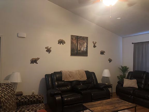 Living Room has a Reclining sofa, love seat & 2 comfortable chairs with TV.