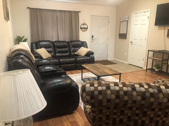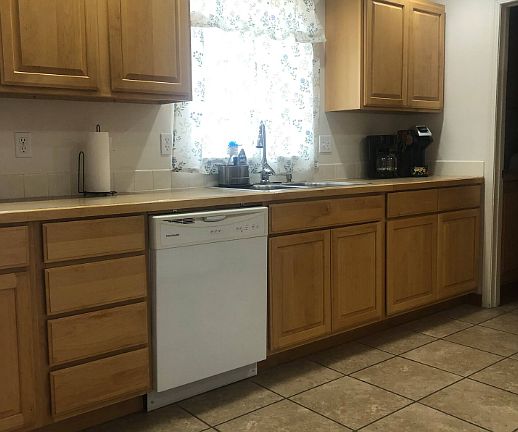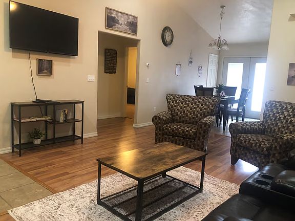 Home is only 2 minutes to stores, hospitals & other businesses. Kitchen includes table & chairs with seats for 6. It also includes a Dishwasher, Fridge, Microwave, Coffee Pot, Toaster, Air Fryer, Pots, Pans & Cooking/Eating utensils.