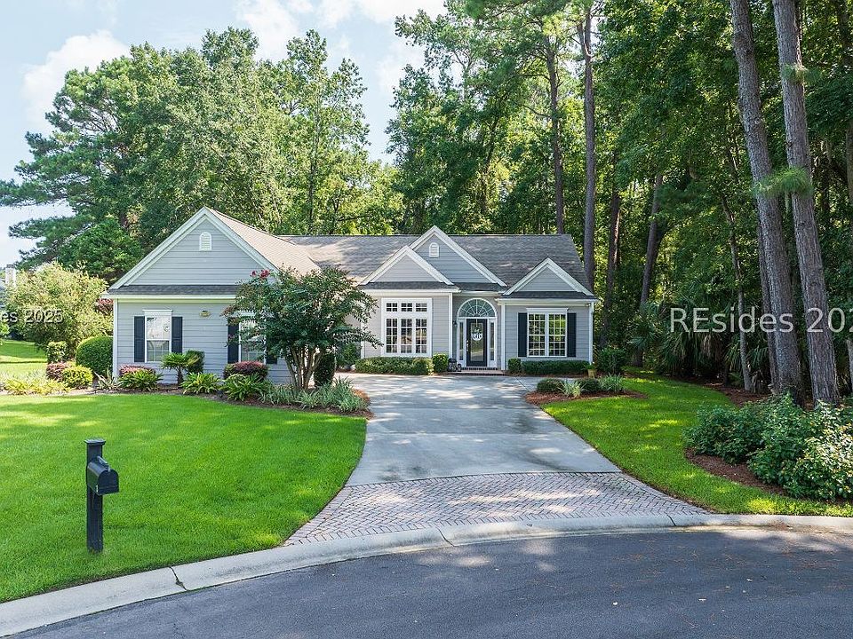 This beautiful .44 acre property is located on one of the most private and peaceful court locations in The Crescent! The Crescent backs to Colleton River marshes. This is a Chartwell model with a sunroom off the great room. 4 bedrooms/3 baths. New HVAC 2024-15 SEER. 30 yr Owens Corning Roof 2017 w/transferable warranty. Gracious and inviting foyer. Hickory hardwood floors in GR & DR, tile floors in Kit. Plantation Shutters: primary bedroom & bath, DR, guest room and reading room. White 42" kitchen cabs refaced plus pull out drawers, under cabinet lighting, tile backsplash, center island stays. Kitchen SS appliances: GE Induction Cooktop stove and microwave '23, GE refrigerator '22. White Bosch DW '20. Sunroom with large tile flooring, vinyl siders. Primary bedroom with tray ceiling, bath with separate shower, soaking tub, double sinks, linen closet, & big clothes closet. Large laundry room w/cabinets and sink located between kitchen and garage. Very private view in back. Arnold Palmer Signature Golf course. Free one month membership as new owner. 10 minutes to all Bluffton fun and shopping. 3 miles to the island. The Crescent front gate is manned 24/7 plus convenient back gate to Belfair Towne Center shopping center. Other amenities include pickleball and tennis courts, Olympic saltwater lap pool and kiddie pool, covered picnic pavilion, restaurant in clubhouse.
