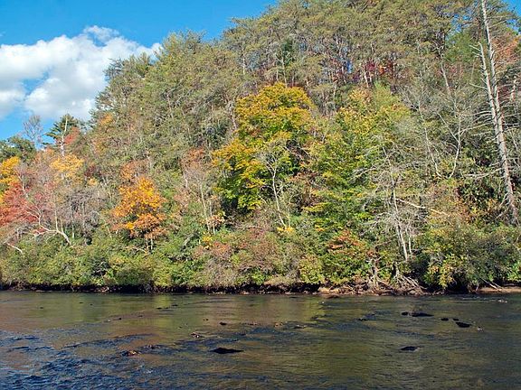 Some of the BEST TROUT FISHING on the HIWASSEE RIVER. Come listen to the river sing sweet songs to rock your soul!. This wooded 1.359 acre lot with 173.94 feet of Hiwassee Riverfront to center line of river is just a few miles from the historic Hayesville, NC. town-square. Underground power to site. Minimal restrictions and low road fees makes this a great riverfront development to build your cabin/cottage in the woods. Building site is high out of flood zone. Lot also has a community river access within River bend development for all owners use.
