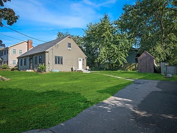 Beautiful turn key custom designed Cape w/ 3 bedrooms, 2 baths, newly renovated kitchen (2022) w/ stainless steel appliances, quartz counters w/ full tile backsplash, tile floors, counter w/ bar stools to open floor plan that leads to dining room w/ hardwood floors that continue throughout first floor w/ views of the Danvers River out front windows. 1st floor has a large family room w/ brick surround wood burning fire place. 1st floor also has primary bedroom & full bath (newly glazed tub) that is just off the bedroom. Roof, siding, gas heating system, electrical, plumbing, insulation and 2nd floor bath done approx.,2009 & new hot water tank 2022. Mostly newer windows throughout home. Hardwood floors continue up stairs to the second floor Bedrooms. Heating is forced hot water throughout & electric heat in 2nd floor bathroom. Split AC units (2) work very well to cool home along w/ 2 window AC's to supplement. Direct gas hook up outside on patio, large shed. This home awaits you.