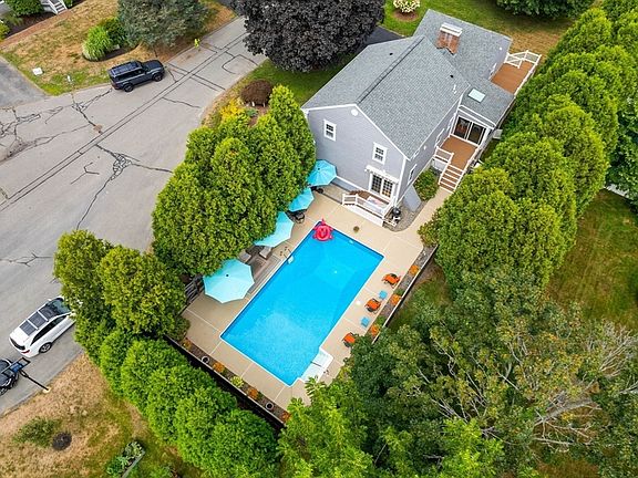 Located in Newburyport's highly desired South End, this elegant Colonial is tucked away on a serene cul-de-sac just seconds from the Merrimack River & Joppa’s treasured coastline. Featuring high quality updates throughout, this home offers resort-style living with a sparkling pool, 3 outdoor composite decks, lush gardens & a sun-filled three-season porch. Inside, an open & airy floor plan showcases hardwood floors, vaulted ceilings, skylights & grand fireplace. The chef’s kitchen boasts granite countertops, newly installed stainless appliances & an island that flows seamlessly to a dining room framed by a French door slider overlooking your private outdoor oasis. Retreat upstairs to the luxurious primary suite with dual closets & spa-inspired bath featuring a double quartz vanity & soaking tub. Two additional bedrooms, updated baths & a finished lower level with wet bar complete this coastal gem—where elegance, comfort, and seaside charm converge. Moments to downtown & Plum Island.