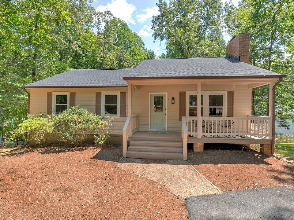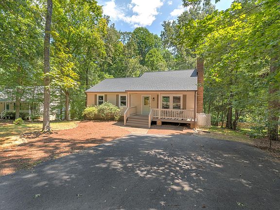 Completely remodeled home at Lake Monticello. 4 bedroom, 3 baths one level home with walkout basement. On the main level there is a great room with vaulted ceiling and wood burning brick fireplace. The eat-in kitchen has freshly painted white cabinets, new granite countertops and tile backsplash. There is a huge deck off the dining area. 2 bedrooms share a full bath with new tub/shower and vanity. The master bedroom leads out to the deck and its attached bathroom has a new custom tile shower. In the basement there is the 4th bedroom with a bathroom which has a new shower and vanity. The family room has a gas fireplace and sitting area. There is a storage room with 2nd fridge. When leading to the large backyard there is a concrete patio and hot tub. This lot is private and leads through the woods to the creek. The exterior and interior of the home was just painted. Items replaced in the home in 2023: Roof, Heat pump, hot water heater, light fixtures, bathroom faucets, microwave, LVP flooring throughout. Paved driveway. Owner is a license realtor in Virginia.