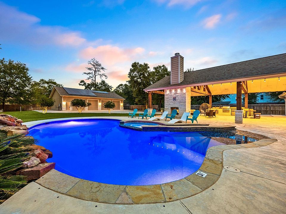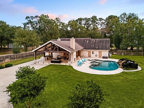 Experience resort-style living every day in this custom Artios-built home, privately tucked behind a gated entrance on 1.3 acres of pure privacy & outdoor enjoyment. Seamlessly blend indoor/outdoor living with an expansive 1,300 sq. ft. covered patio featuring a cozy fireplace, built-in outdoor kitchen (grill, sink, and refrigerator), and plenty of room to relax or entertain. Step outside to your own backyard oasis complete with a sparkling pool, waterfall feature, and hot tub. Inside, the spacious open-concept floor plan includes a chef’s kitchen with an oversized island, and an abundance of custom upgrades and thoughtful details throughout. Dedicated boat storage area with 10,000-lb lift, a garage/shop w/half bath & oversized bay doors, and RV parking w/full hookups. A solar array with battery storage plus a home generator provides energy efficiency &peace of mind. Zoned to Klein ISD. If space, privacy, and a custom home built for entertaining are on your wish list, look no further!