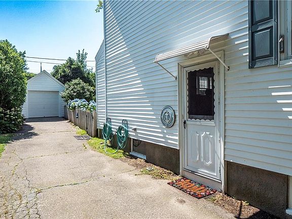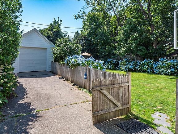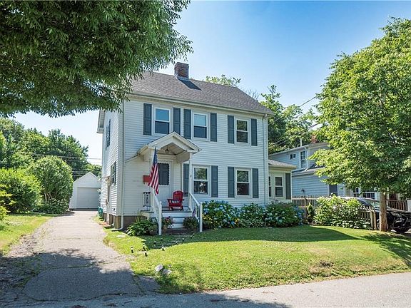 This charming 1936 colonial home is nestled in the historic streets of Newport exuding timeless elegance and a touch of coastal charm. Upon entering, you step into a spacious living room featuring original hardwoods throughout and a brick fireplace. A fully enclosed sunroom off the living area offers an abundance of natural light and additional living space. The large, updated kitchen features oak cabinets with stainless appliances with windows overlooking the backyard. Adjacent to the kitchen is a 1/2 bath and a quaint dining room, perfect for intimate gatherings. Upstairs, the home offers 3 bedrooms and a full bathroom. The primary bedroom has a large cedar closet and views of the backyard, while the additional bedrooms are cozy retreats, ideal for children or guests, with hardwood floors and natural light filtering through. A walkup attic offers additional storage or the potential to add finished square footage to the home in the future. The washer & dryer are located in the unfinished basement along with additional storage space and a work bench area. The backyard is a private oasis, bordered by a picket fence, shaded by mature trees, and lined with stunning hydrangeas, There is a patio area for outdoor dining and a lush lawn perfect for summer picnics or relaxing in the sun. A detached garage provides additional parking and storage. The home has been lovingly maintained, preserving its historical integrity while incorporating modern amenities for comfort and convenience.