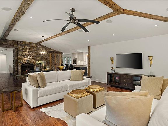 Welcome to #3 Rutherford Lane, a distinctive Mid-Century gem on 1.35 acres and private cul-de-sac in prestigious Town & Country. Newer custom windows saturate over 4,400sq ft. with natural light. Modern yet comfortable, not a detail was overlooked. Classic Mid-Century high ceilings, wood beams and floors. Wide open Living, Hearth, and Dining Rooms boast double wood-burning fireplaces. For the entertainer, a newer gourmet kitchen with top-tier appliances, custom cabinetry, and sprawling island. The primary suite and bath are their own retreat. Two additional bedrooms with ensuite baths & custom closets, and a perfectly appointed office space. Outside, a private oasis awaits w/pristine pool, hot tub, tree house & lush gardens, backing to T&C town square park. A spacious mudroom w/extra storage and sink, finished Lower level w/high ceilings, a full bath & 2 king-sized Murphy beds for guests, and finally, a long driveway & 4-car gar w/ custom storage complete this Mid-Century experience!
