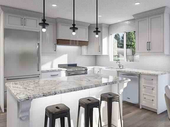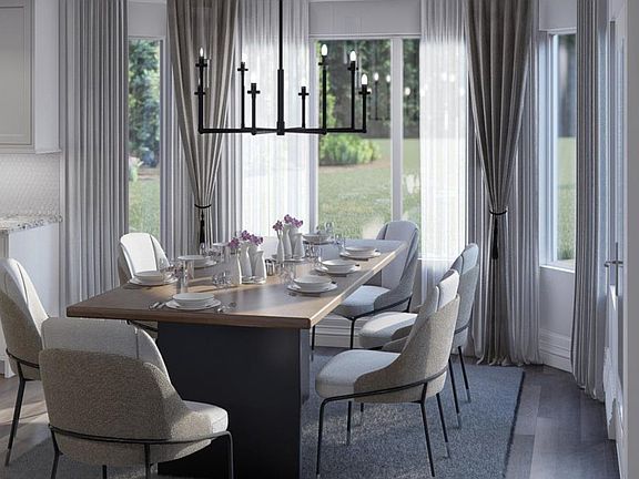 Corner lotBacking onto green spaceDouble attached garageBungalow layoutAmple counter spaceBeautiful kitchen islandElegant dining room