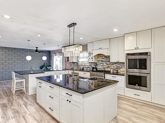 Unique 3 Bed, 2 bath oversized bi-level with a driveway and lawn in front of entrance. Interior boasts a Gourmet kitchen with suspended lighting, granite counters including, a huge center island, double oven, microwave, and ledger stone backsplash are open to living /dining rm with a bold brick fireplace, masonry mantle and hearth. The sliders to a deck with grill overlooking a fenced yard with an above-ground pool. Large master bedroom and full bathroom with marble floor and shower stall with a double vanity and recessed lights. Downstairs, spacious bedrooms, a brick, wood-burning fireplace, and a full bath. A fenced yard with an above-ground pool completes this perfect retreat. Newer HVAC, 5-year-old roof..... Some exterior and interior images digitally enhanced for illustration of space including virtual removal of items.
