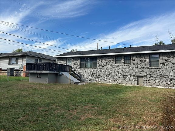 This well cared for stone-exterior home is located in an established and quiet neighborhood and is move-in ready. Beautiful hardwood floors, 3 bedrooms, 1.5 bathrooms, large family room, oversized patio/deck, and storm cellar. Updated hall bath with dual sinks. Kitchen has an eating bar & pantry. Less than 30 minute drive to Tulsa.