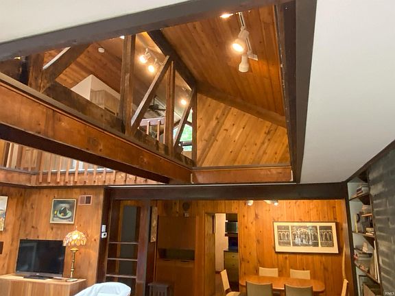 COMING 8-12. Live your dream in this beautiful, affordable home in Beverly Shores! A rare find—just a 5-minute walk to Lake Michigan! This spacious 4-bedroom, 2-bathroom home was updated over more recent years by owners, architects, through 2024. This comfortable home’s feel is warm contemporary, with rustic beach-house vibes, Scandinavian touches. It offers cedar cathedral ceilings & skylights, stone fireplace, ample built-in bookshelves, mostly Pella windows and more. The gorgeous loft is designed as a large master bedroom & bath with jets. Potential exists to add a deck or addition from the second-floor loft. Your creative and practical exterior and interior improvements can make this home your personal paradise! Generous-sized rooms are mostly paneled with solid pine and drywall. Spacious laundry room doubles as a workshop. Plenty of closets & clever storage areas add extra value. Relax in the backyard’s screened porch. Bask in the sunny backyard—a rare find in Beverly Shores and a boon for gardeners. Topsoil, added over the years, can be transformed into your dream garden or lawn. A backyard flagstone patio offers shade & is great for entertaining. The front of home is planted with hardy perennials & herb garden! This home has been loved by its owners since the early 1980’s. Don’t let the opportunity to own a beautiful, affordable home in Beverly Shores slip away.