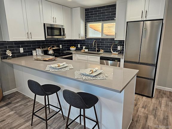 PRICE RIGHT-SIZING***GORGEOUS TOTAL REMODEL*** This is the one you have been waiting for. Tastefully remodeled home in one of Denver's hottest neighborhoods on an elevated lot. This house sits just minutes from Sloan's lake on a corner lot. Once you walk in you will notice the openness not typically found in this style and vintage. Open kitchen boasts Steamboat Quartz countertops, custom new cabinetry, tile backsplash, soft close doors and drawers, and stainless steel appliances. The living room has real wood burning fireplace and custom tile surround. The main level has 2 decent size bedrooms and one full bath. Venture down stairs and you will find another large family room with great ceiling height. Another egressed bedroom and large bath make this a full and functional 3/2. Both bathrooms have been completely redone with new flooring, custom vanities, exquisite lighting and ceramic tile surrounds. And now the best part. This property boasts a RARE 2 car detached oversized garage along side of another 1 car detached garage. The uses for these structures far exceed just parking your cars. Workshop, man-caves, or simple storage make this house one of a kind, especially this close to downtown. You must see to appreciate. New flooring, recessed lighting. New paint, doors and hardware. New Furnace and A/C. Newer plumbing. New Electrical. New privacy fencing. Plus too many other upgrades to list. This one will go fast!