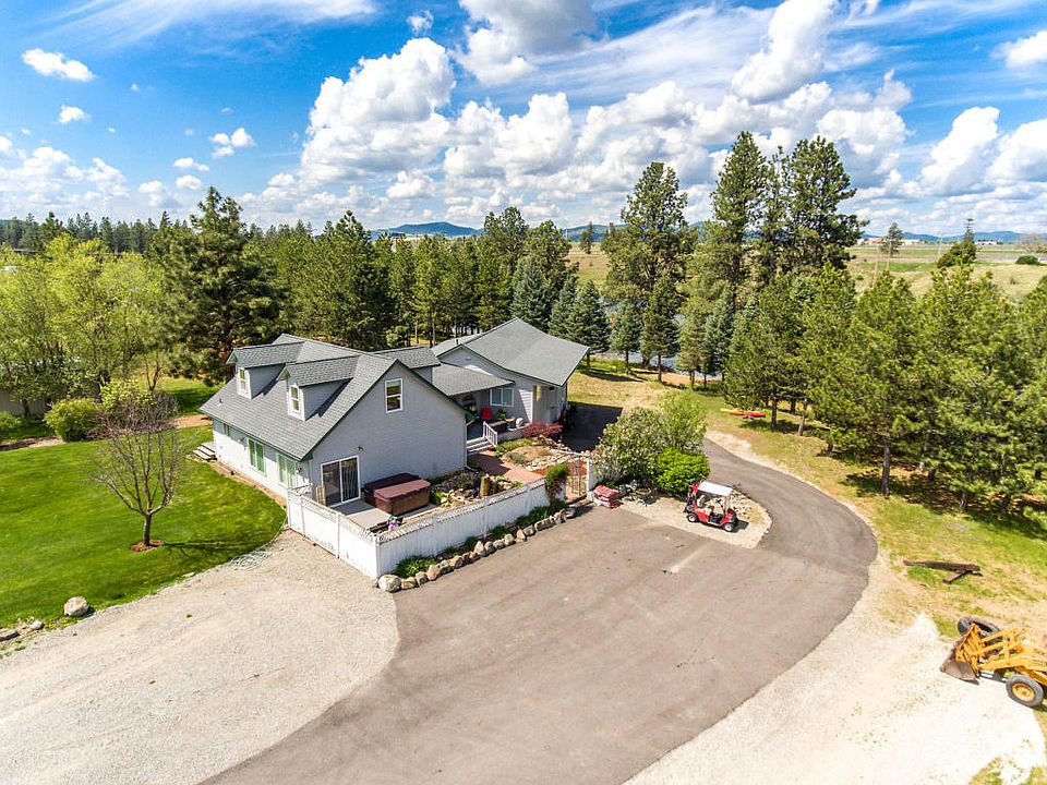 5 acre riverfront property in Post Falls. Beautifully appointed 4,000 sq ft home. Spacious great room with stone fireplace, massive kitchen and two dining areas all with stunning river views. Mud/utility room could also be a 2nd kitchen.Two main level master suites, one with a private office. 2nd floor bedroom is so large it could be a divided space. Walkout basement has family/recreation room and plumbing for bathroom. Brand new 50yr architectural roof! Sellers related to agent.