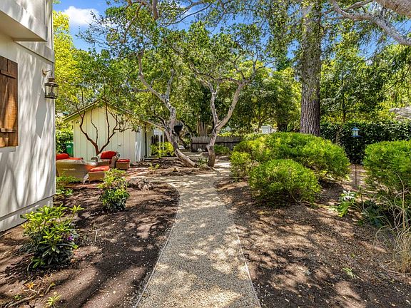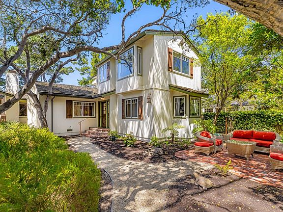 Just four short blocks to the beach and a level 5 block walk to town 'Casa Can't Believe it' is a rare treasure and delight hard to find. Set on a 6,000 SF lot a curved garden path leads you to a spacious yet cozy cottage classic in design. Within the 2,000 SF of living space there are three suites inside, nicely separated and positioned around a Great Gathering Room with high vaulted ceilings, Carmel stone wood burning fireplace and French doors and windows on all sides. Close at hand the kitchen and dining room are open and light, further extending the 'Great Room' feel where everyone can join in and be part of the fun. The first suite downstairs, almost a cottage unto itself, has Carmel stone fireplace, high vaulted ceilings and a private French door entrance and deck to the outside. Suite number two enjoys spacious garden and South facing views. Upstairs the generous primary suite features a cozy light and bright reading room with a corner bedroom that seemingly floats just under the canopy of trees and the sunlight. Finished in hardwood and stone floors, stone counters and plaster walls, the interior spaces and places will surely delight while the exterior garden and outdoor areas create a destination in their own right. Remodel plans available, ideal lot for an ADU,