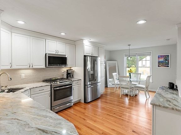 Welcome to 3 Sarah Reed Hunt Way - an elegantly remodeled duplex-style condo offering 2,300+ square feet of thoughtfully designed space in a desirable quiet Middleboro community. The open-concept layout features a sun-filled living room with cathedral ceilings, gas fireplace, and seamless flow to a new private deck with hot tub overlooking a very private back yard - perfect for relaxing or entertaining. The stunning kitchen boasts quartzite countertops, custom cabinetry, stainless steel appliances, & a charming breakfast nook. A first-floor primary suite features vaulted ceilings, hardwood floors, and a private bath. Upstairs, a spacious second bedroom & bonus room provides living options. The finished lower level is fun ideal for a home gym, office, or playroom. Additional highlights include central air, two-car garage, & beautifully landscaped grounds. Just minutes from I-495 & commuter rail, this fully updated, move-in-ready home offers refined, low-maintenance living at its best!