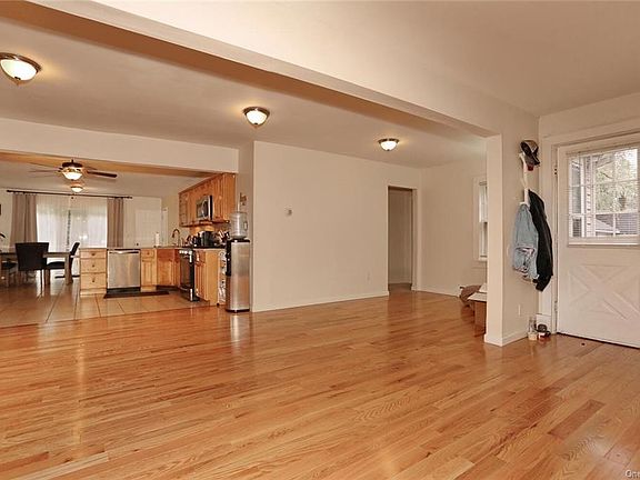 Welcome home to this contemporary home sitting on sprawling flat property. Home features open floor plan with large eat in kitchen, ceramic tiled floors and new appliances. Living room and dining room has gleaming hardwood floors, spotlights and woodburning fireplace. New bathrooms. Spacious bedrooms. Loads of closets. This home is a must see.