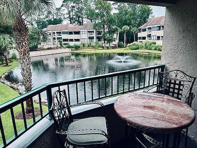 A spectacular Anchorage villa! Light-filled room with tranquil lagoon view. A generous sized living room leads to the dining area and covered terrace. Fabulous kitchen with tiled walls, tray ceiling, and updated appliances including a separate wine fridge. A few steps up from the living room leads to the 2 bedrooms, the master with private bath and the guest room or office with guest bath. Assigned parking spot and private storage closet. Take advantage of all that Shelter Cove Marina has to offer including lively restaurants, unique shops and a plethora of live entertainment. Leave your car parked and take the complimentary Dunes Buggy to the beach across the street at Palmetto Dunes! Golf, pickleball, tennis, etc. are minutes away!