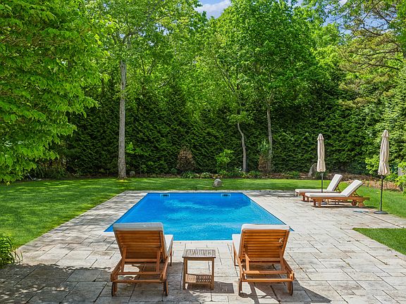 Rental Registration #: 21-1020 Newly renovated 4 bedroom, 3 bath outfitted with high end appliances and new modern furniture. This open living space opens to a bright and light-filled great room with 3 skylights and a vaulted ceiling plus a separate dining area and a chef's kitchen with high-end stainless steel appliances, gas cooking and marble counter tops & Island. Multiple sliding doors to an extensive wrap-around deck for al fresco dining and entertaining leading to an extensive lush yard and the 16' x 36' heated salt water pool surrounded by Travertine. Completing this stunning home are two primary ensuite bedrooms upstairs and two additional guest bedrooms on the main floor with a 3rd bathroom. The home is outfitted with a 2-zone central air, Nest & Security System with cameras and will surely be the perfect Hamptons Summer House!