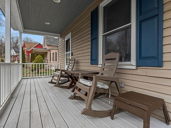 Charming antique Colonial on a quiet, dead-end street in a convenient neighborhood. This move in ready home features 9' ceilings, a bright living room with paddle fan, large dining room, and a spacious kitchen with granite counters, painted cabinets, center island, skylights, gas stove, and two paddle fans. The kitchen leads to a wood deck and fenced yard, and the first floor also features a large, convenient laundry closet, full bath, and mudroom. Three carpeted bedrooms upstairs include two with paddle fans, plus a 3/4 bath. A finished bonus room with bar area in the dry, heated basement adds extra space. Additional highlights include wood and laminate floors on the first floor, newer vinyl windows, updated plumbing and 200 amp electrical, 7 year old roof, and forced hot water gas heat. A perfect blend of comfort, charm, and updates in a convenient location!