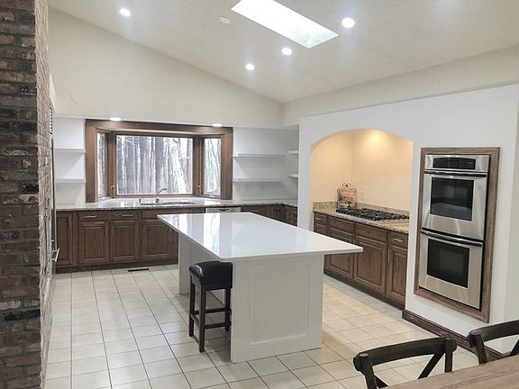 - Kit Dscrp: Pantry, Dining Area, Countertops - Stone/Granite/Solid, Ceiling - Cathedral, Flooring - Stone/Ceramic Tile, Kitchen Island, Stainless Steel Appliances, Fireplace, Exterior Access, Gas Stove