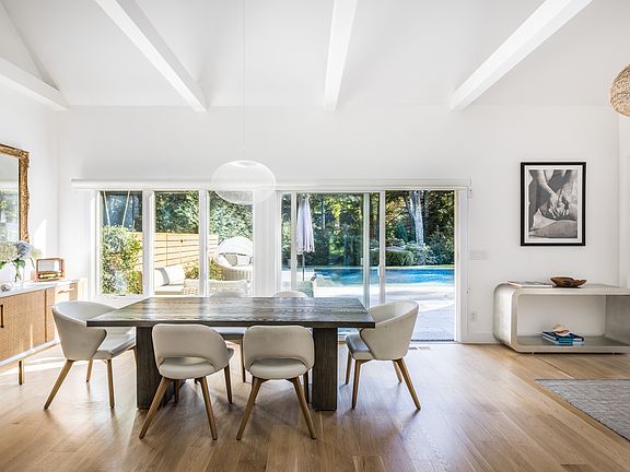 Rental Registration #: 25-756 This property is Better than a Boutique Hotel. IMMACULATE. PRISTINE. HAMPTONS STYLISH. East Hampton Village Fringe. Newly renovated and stylish in this East Hampton easy in and easy out location. It is a quick bike ride to the ocean beaches and shops. Two ensuite bedrooms on the first floor and two more on the second floor makes this perfect for your summer holiday. Feel the "beachy" vibe as soon as you enter the foyer area. Natural sunlight shines throughout. Designed with a large open floor plan, vaulted ceilings, 7" natural white oak flooring, oversized decking which seamlessly flows between indoor and outdoor living. The Spacious outdoor entertainment area with bluestone patio is adjacent to a 20X40 heated gunite pool which can be seen from the entire first floor. Relax in privacy on the chaise lounges, sofas and outdoor furnishings which were designed in Italy. Gorgeous floral installations from Marders complete the pool area oasis surrounded by colorful flowers. .The new kitchen boasts a large farmhouse sink, garbage disposal and Bosch appliances. The generously sized laundry room transitions right off the kitchen and offers one more large sink.Entertaining is easy. Enjoy an outdoor BBQ and croquet tournament, or dim the lights and dine indoors. The comfortable living room offers plenty of seating to watch your favorite movies. On a chilly evening, warm up to the gas fireplace. The newly built wing was designed for the two ensuite bedrooms. The primary bedroom boasts a king size shelter bed, reclaimed oak dressers and nightstands, oversized luxurious bathroom, and extra large soaking tub. Sliding doors lead you to the oversized deck. The window treatments open with remote control. Wide stairs with a landing lead you to the second floor and two more large bedrooms share a beautiful bathroom. Artwork is curated from many local artists. Details such as night time colorful pool lights, delicious water pressure and Tynant ionized drinking water make this home a true vacation spot. There are two driveways. One service driveway and the main driveway is lined with tall evergreens for privacy and has several areas for parking. Home is furnished with RH, Serena and Lily, Homenature, Jenni Kane, Hunter Douglas, DWR and other like designers. House comes with a professional stairmaster. ..