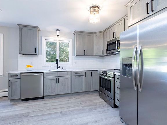 This classic mid-century inspired ranch in Dunns Corner has just been extensively renovated and represents a rare offering in this price range. The main living area is open to the stylish new kitchen and features a bright, modern floorplan ideally suited to entertaining and casual living. The contemporary kitchen will dazzle your friends with its granite countertops and gleaming stainless appliances. The renovations include all new bathrooms, re-finished hardwood floors, new paint throughout, new lighting, new central AC, new roof, new septic system, etc. There are two wood-burning fireplaces and the lower level has been finished off to include a large family room and a half bath. Located in a very quiet neighborhood on a small cul-de-sac, the home sits on over a half-acre lot with plenty of room in the shady backyard for family fun. If you have been looking for a reasonably sized home on one level that is close to area beaches, schools and shopping, you know just how hard it has been to find. Your search is OVER! This home is ready to move right into – pack your bags and begin living the good life today! Downtown Westerly features a variety of restaurants, theaters, art galleries, live music, shops, a state-of-the-art YMCA, an outdoor skating rink, a fabulous library and the acclaimed Wilcox Park. We also have our very own Amtrak station for quick access to NYC and Boston and Westerly Airport for regional air service.