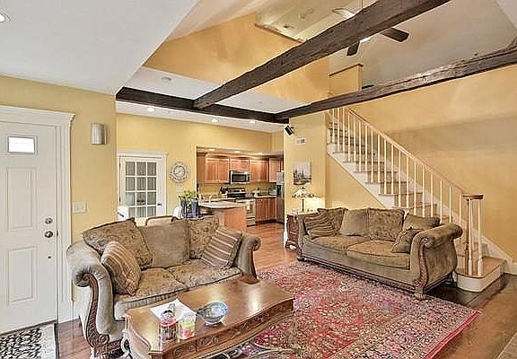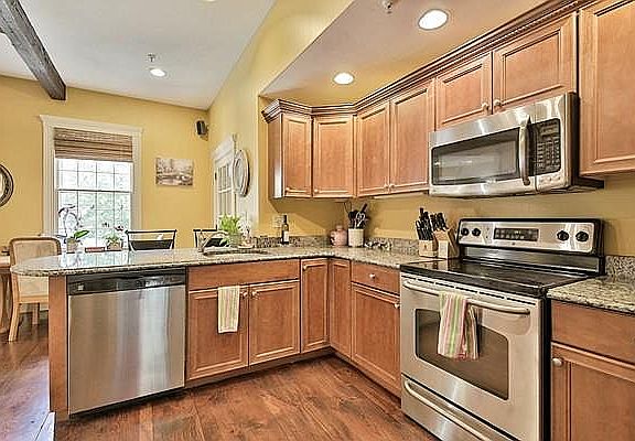 A rare and beautiful low maintenance condo that truly looks and feels like a single family! Stephen Lane Farm is a small development, designed by a local architect to retain the look and feel of a classic NE Farmhouse and barns. This 2 bedroom unit has it's own entrance and a spacious private deck. Once inside you are greeted by a warm and inviting space, enhanced by an oversized fieldstone fireplace, soaring ceilings with beams, and wide pine floors. Desirable open floor plan, anchored by the fantastic kitchen. With cherry cabinets, granite counters, breakfast area and large pantry, it will please any cook! Master suite w/ beautiful bathroom and walk in closet. Additional guest room, full bath, and laundry round out this space. There is extra room for an office and more in the neat loft space. Central air, gas heat. One car attached garage plus an additional space in the detached garage. Lovely grounds w/ access to trails and conservation land- plus easy commute! A very special place!