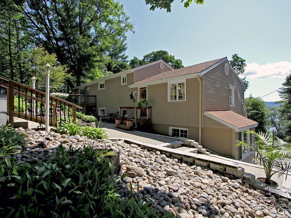 STILL BAY DUPLEX! Beautiful newly renovated 2 family home with deeded beach rights on Lake George. Each with 4 bedrooms, 2 bathrooms and an open floor plan. The first floor has a kitchenette and a new kitchen with pine paneling, a living room and family room with sliders opening to a large deck. The second floor has a large kitchen, a dining room with a wall of windows & a living room with sliders to the large deck with filtered lake views. Nicely landscaped yard with patio. Attached 1 car garage in the basement.