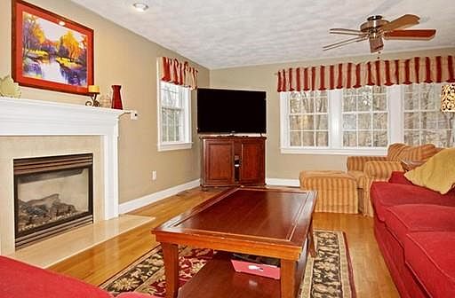 Large updated Cape style home close to shopping and night life! Living room offers a wood burning fireplace with dental molding highlighting the mantel. Heated sun room offers plenty of windows to view the seasons changing. Family room is very spacious and has a second gas fueled fireplace for warmth. It also has sliders to access the outdoor deck as well as a large window seat which opens for additional storage space. It also has an additional of 13x9 of space for a game room area. Kitchen includes a pantry closet with granite counters and maple cabinets. Upstairs holds 4 bedrooms. Master bedroom has walk-in closet and additional storage under eaves. The cathedral ceilings add wonderful height to the master bedroom. Master bath has a granite vanity,whirlpool tub & glass enclosed shower. There is an additional 5th bedroom on the first floor that is currently being used as a guest room with plenty of built in bookshelves and storage.Possible additional living space in basement..