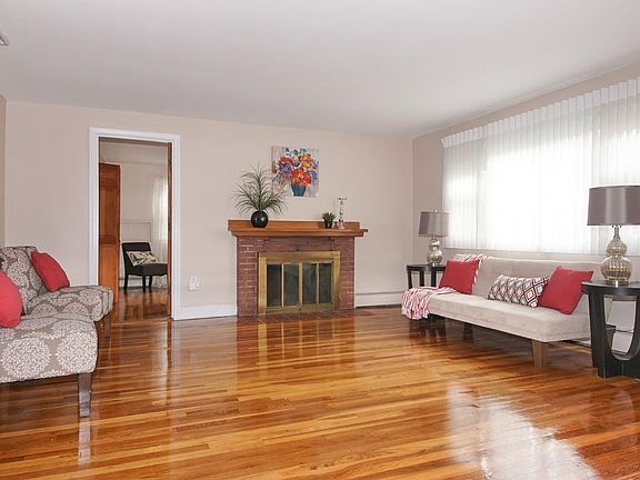 Wonderful center of town location w/this sprawling (51') ranch on an oversized lot just steps from public transportation yet nestled on a quiet side street. Walk to the high school, town center, restaurants, mall, Lahey Health and more! This 5 bedroom home offers 9 rooms including a large eat-in kitchen w/sliders to a large deck overlooking a private yard, first floor living room and lower level family room, heated sun room, storage, workshop, large laundry room and room for an additional bath. This turnkey home offers fresh interior paint hardwood flooring, new carpeting, maintenance free vinyl siding, replacement windows, 3 heating zones, central air and offers a large driveway plus additional circular driveway and a manicured lawn.