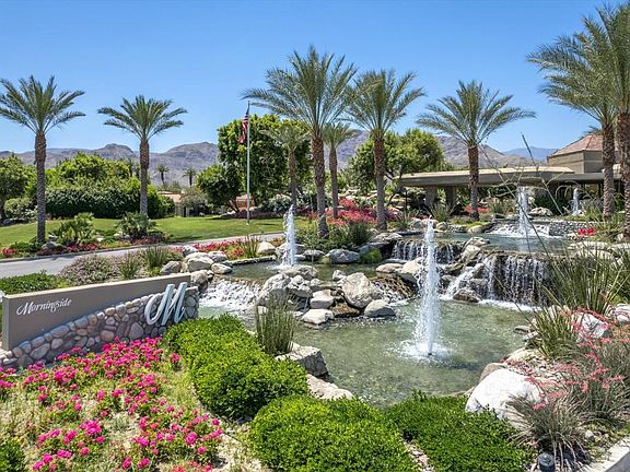 $1.25M REMODEL. Stunning home located in Morningside Country Club, Rancho Mirage, CA. Designed by an award-winning team of architects and interior specialists. This stand-alone residence sits on a large, quiet cul-de-sac lot with a serene lake backdrop. Enter thru the front gate to a redesigned pool and spa with cascading waterfall. A covered promenade leads to a striking 6 ft glass pivot door. Inside, natural light fills the home through floor to ceiling glass and multiple skylights. The Living area features a 16ft vaulted wood ceiling w exposed beams and a folding wall of glass that opens to a south facing pool and mountain views. The custom bar includes a dishwasher, Scotsman ice maker, Miele wine column and a quartzite waterfall counter. Porcelain flooring extends seamlessly to the outdoor dining area through another folding wall of glass ideal for al-fresco entertaining. A SONOS sound system enhances the atmosphere throughout the home. The Chef's kitchen is equipped with Miele appliances, Wolfe induction cooktop, custom cabinetry and Cambria countertops, centered around a 15 ft island with seating for four. The primary suite includes two private patios, a sitting area, programmable Hunter Douglass blinds, dual walk-in closets, and a spa-like bath with lake and mountain views. Two additional ensuite bedrooms feature private patios and custom details. Additional features include a custom laundry room w Cambria counters and built-ins, owned solar power, a private putting green and a two-car plus golf cart garage. Experience refined desert living at Morningside Country Club.