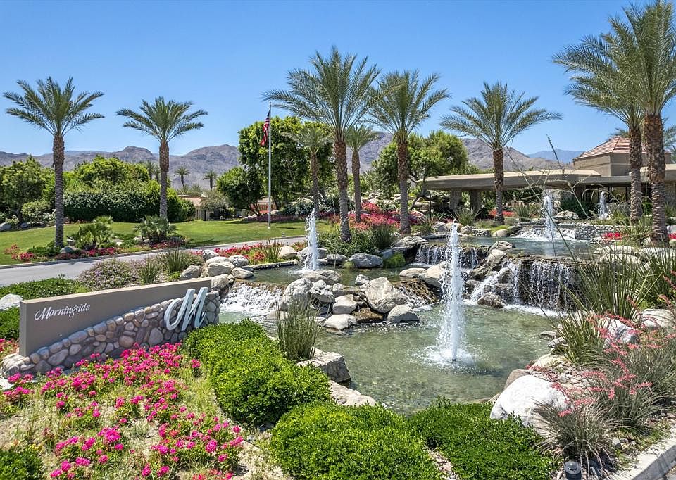 Welcome to this stunning home located in Morningside CC, Rancho Mirage, CA. This exquisite property has a bespoke floor plan designed by a Team of Architect, an NKBA award winning CKD, CBD and Interior Decorator. This stand-alone dream home is situated on a large, quiet cul-de-sac lot with a lake in back. As you enter thru the front gate you stroll past a large, redesigned pool with hot tub with cascading waterfall. The covered promenade leads to a 6 ft wide glass pivot door. The interior space is sunlit with floor to ceiling glass and multiple skylights throughout. The Living area features 16ft vaulted cathedral ceiling clad in wood w large beams and features a folding wall of windows which completely opens to create and indoor/outdoor living space open to south facing pool and beautiful mountain views. The LR features a custom bar area including a dishwasher, Scotsman ice maker and Miele wine column with Sommelier kit, custom cabinetry and quartzite waterfall counter. The flooring throughout is 48'' porcelain and is carried out to the outside from the dining area which also features a folding glass door wall affording al-fresco dining. The home features SONOS home entertainment system which provides the soundtrack for the family gatherings and celebrations that await. The Chef's kitchen features Miele steam oven, dishwasher, and separate refrigerator and freezer, Wolfe induction cooktop and Wolfe downdraft, custom cabinetry and Cambria countertops with a 15 ft island with seating for 4 and a built-in tv to catch your favorite cooking show! A unique powder room features a crystal light fixture, handmade mirror and custom ceramic basin and tile wall. The primary suite features two patios and a sitting area, programmable woven Hunter Douglass blinds and stunning chandeliers, his and her walk-ins with skylights and custom cabinetry. The primary bath features 10 ft ceiling and large windows with lake/mtn views. Two additional ensuites offer private patios, unique lighting, custom programable blinds. Large custom laundry room w Cambria counters, large sink and built-in ironing station w swivel, lighted board. The clothes dryer is located on raised platform for ease. Owned Solar Power on roof. Private Putting Green. Garage for two full sized vehicles plus golf cart. Live Life Fully at Morningside Country Club. Call for private showing and Clubhouse tour. Raymond 760 485-4586.