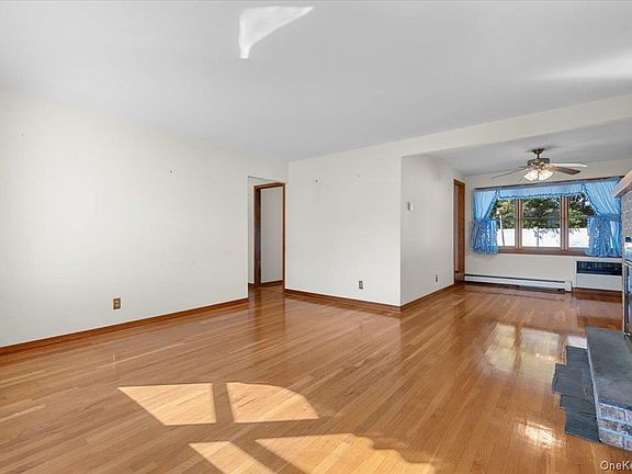 Discover this expanded ranch in North Bethpage, offering 6 bedrooms and 2 bathrooms. This spacious home boasts hardwood floors, a cozy wood-burning fireplace in the livingroom, and a full basement partially finished with a separate entrance. The attached garage provides ample storage space. Enjoy outdoor living with sliders leading to a covered deck and private yard! Roof 2013. Kramer Lane Elementary