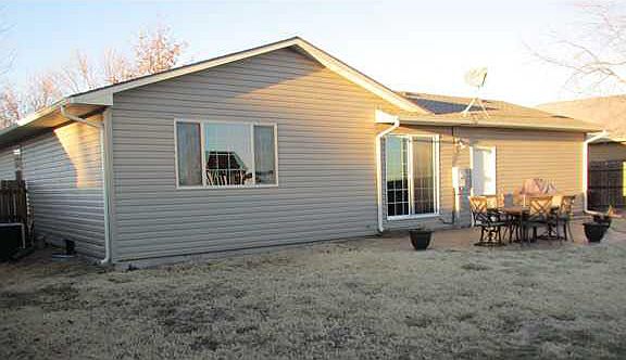 Welcome home! This 1146 square foot home offers 3 bedrooms on the main level, two bathrooms, and a two car attached garage with opener. The kitchen is filled with cabinets for storage and flows into the eat-in dining room, great for a family or having friends over for dinner. The basement has a LARGE family room; enough space for watching a movie, plus a game room or play area for the kids. The basement currently has a exercise room off of the family room, but could also be used for additional storage if needed. The backyard has a privacy fence as well as a stamped concrete patio for entertaining. The large sandbox and storage shed stay with the home. Updates include: new Pella windows in 2010; new siding, roof, and gutters in 2011. It is located less than one mile from desirable Goddard elementary, middle, and high schools as well as the city pool and park. Schedule your private showing today!!