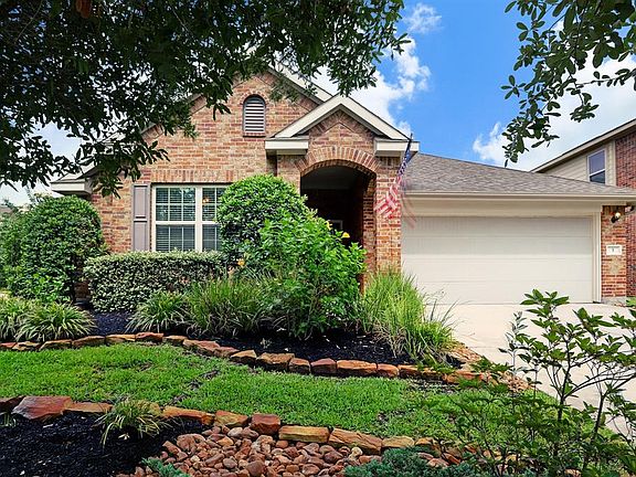 Lovely 1.5 story home located on a large, corner lot in the popular Jagged Ridge section of Creekside Park/Woodlands. Flexible floor plan, with two bedrooms up front, primary bedroom in back, and a fourth bedroom, or optional gameroom with full bath upstairs. Open living, with a beautiful kitchen with granite island/breakfast bar overlooking the family room, breakfast room, and formal dining room. Gas stove, tons of cabinet storage & counter prep space. Large laundry room & walk in pantry. High ceilings add to the spacious feel of this home. Primary bathroom boasts double sinks, separate tub & shower, and 2 walk in closets! A covered patio makes a wonderful spot to enjoy the backyard. Nearby parks, pool, trails, shopping, dining, and entertainment. Easy access to Grand Pkwy, Exxon, and more! No flooding!