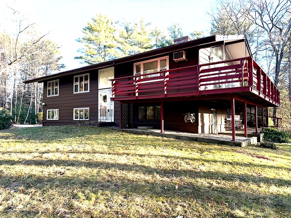 Discover this unique and impressively spacious raised ranch home set on a private, wooded 1.6-acre corner lot. Offering 3 generous bedrooms plus additional flexible rooms perfect for guest space, office, or hobbies, this home provides all the versatility today’s buyers need. Enjoy 3 bathrooms, an updated, sun-filled kitchen with skylights and an island, and two inviting living areas, each featuring a beautiful stone fireplace for cozy New England nights. The expansive wrap-around deck, accessed through two sets of glass sliders, creates seamless indoor-outdoor living and is ideal for entertaining or peaceful relaxation.A 2-car garage, central vacuum, and generator add extra convenience and value. With 2,180 sq ft of comfortable, flexible living space and a tranquil setting that offers both privacy and convenience, this home stands out from the rest. Showings start right away! Some photos have been virtually staged.