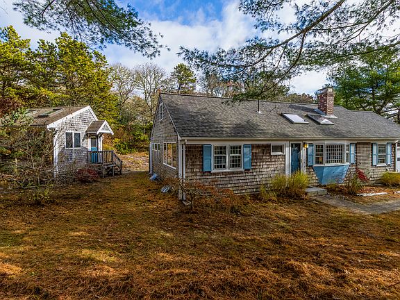 Nestled in a fantastic neighborhood off Church St abutting the Monomoy River is this charming 3 bedroom 1 1/2 bath home w/a DETACHED light and bright Studio OUTBUILDING featuring vaulted ceilings, electric heat, skylights & pine floors. The main house features hardwoods throughout the main living areas and a fireplaced vaulted living room which also has skylights to take full advantage of the light. The good size windows in the primary and backside of the home take advantage of the beautiful plantings in the backyard. The show stopper of this property is the amazing post and beam screened porch which looks out to the private backyard area. The backyard abuts the Muddy Creek Conservation Land which leads to the D. Isabel Smith Monomoy River Conservation Lands. The house also has a stone patio perfect for your outdoor fire after a long day at the beach, outdoor shower, fenced side yard and 1 car garage. Gas forced hot water heat and passing Title V. This one won't last!