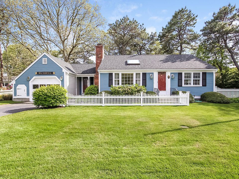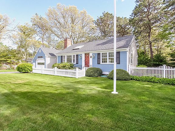Just in time to enjoy the Summer of 2017 on Cape Cod. This 2 bedroom 1 bath ranch style home is located 3/10 of a mile from a beautiful Nantucket Sound beach. Open plan dining/kitchen with sliders to deck. Living room featuring cathedral ceilings, skylight and fireplace. Newer roof, hardwood floors, central AC, garage, full basement, deck, patio, outdoor shower, gorgeous landscaping and white picket fence make this a must see home.