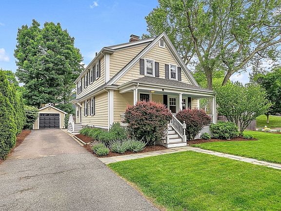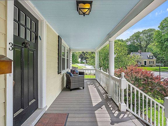 Welcome to 3 Thorpe Road - a charming farmhouse/colonial nestled in the sought-after Mitchell School neighborhood. A welcoming front porch leads into a sunlit interior showcasing hardwood floors, a lovely foyer, and a cozy living room with a fireplace. The kitchen, equipped with a center island, beverage drawers, and a pantry, opens to a bright dining area and a spacious family room with exterior access. A beautiful patio and fenced level yard awaits with lots of green space for all your backyard needs. A mudroom and half bath complete the main level. Upstairs, you'll find a stunning primary suite with a walk-in closet and spa-like bath featuring heated marble floors, along with two generously sized bedrooms, a full bath, and a home office. The finished lower level offers a playroom, full bath, laundry room, and ample storage. This meticulously maintained home is just minutes from the train, shops, and restaurants — move right in and enjoy all that Needham has to offer.
